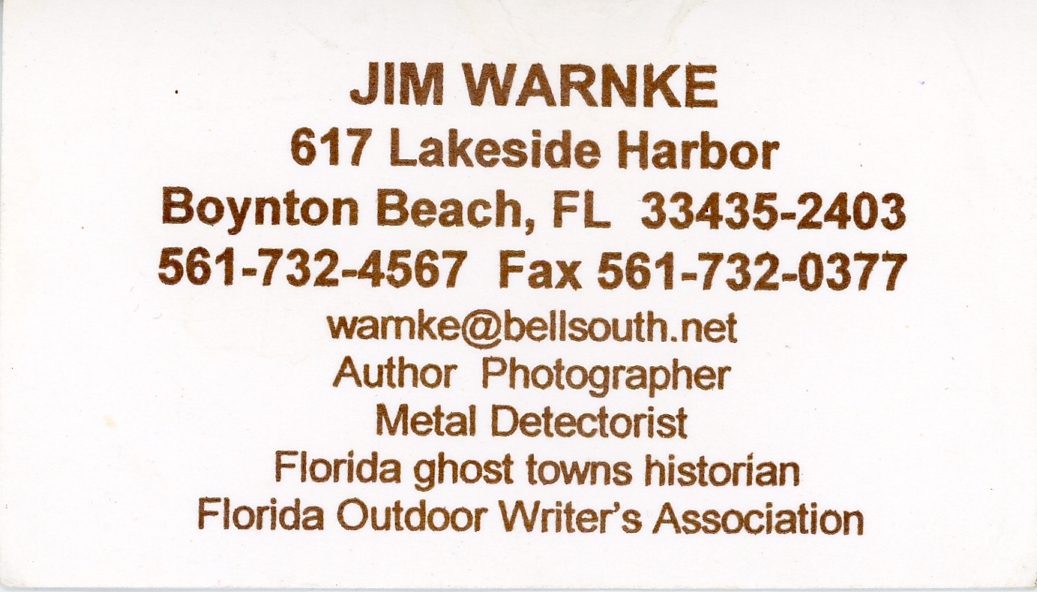 Jim Warnke's notes on misc. Florida treasure / detecting sites.