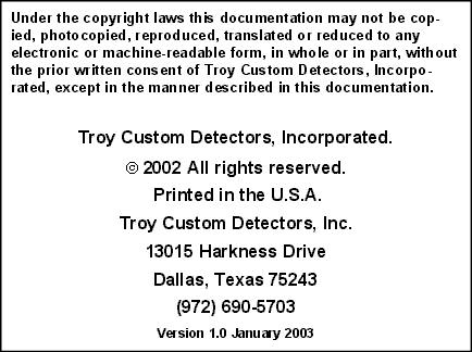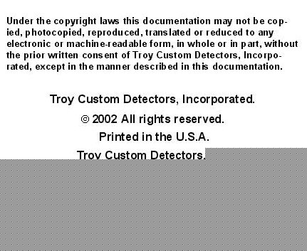 Troy Custom Detectors SHADOW X3 Owner Instruction Manual