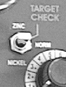 as to whether a The TARGET CHECK switch is a three-position spring-return toggle switch that when released from the ZINC or NICKEL position always returns to its center (NORMAL) position. The NORMAL position engages the DISC control on the front panel. ZINC - This setting 'switches-in' enough preset discrimination to elimi-nate all targets including most aluminum screw caps, Zinc Cents, Indian Head Cents and certain Wheat Cents on down through the pull tab, nickel, foil and small and medium iron conductivity ranges. Keep in mind that the ZINC selection can eliminate Indian Head cents, nickels and other desirable coins as well as most gold rings and many desirable relics. NICKEL - This setting 'switches-in' enough preset discrimination to eliminate all targets below round pull tabs including Nickels on through foil and small iron conductivity ranges. TARGET CHECK can be used as a form of 'reverse discrimination'. That is, if a target does not produce a signal while TARGET CHECK is held in the NICKEL position, it indicates that the target has less conductivity than a nickel and should be thoroughly checked out, as it could be a small Gold or Platinum ring, Gold jewelry item, small Gold coin, Nickel Three-Cent Piece or other worthwhile and valuable low-conductivity metal item. This also holds true for the ZINC position of the TARGET CHECK switch. At some older locations, targets that drop out when the switch is held to the ZINC position could be coins, rings or artifacts. Indian Head Cents for example can read exactly like a Screw Cap, which also reads the same as a Zinc cent. At older locations, it will pay to investigate signals that drop out through the ZINC range and lower as well as all of the good above Zinc coin sounds. PINPOINTING Pinpointing targets with the Shadow X3 can be accomplished in one of two ways: 1) VCO Pinpointing - Push and hold the VCO PP pushbutton.