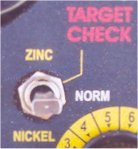 The TARGET CHECK on the X3 is similar in function to the COIN CHECK on the X2. However, the TARGET CHECK has 3 levels of discrimination and the COIN CHECK only has two. The TARGET CHECK has a ZINC and NICKEL toggle setting and the X2 only has the ZINC setting. At the ZINC setting, everything above a Zinc Penny will be reported with audio while the NICKEL setting will report any target from a Zinc Penny down to the round pull-tab. If, while in the NICKEL setting there is no signal (sound), then the target will be from a nickel down to iron. The bottom limits of the TARGET CHECK are determined by the DISC setting. If you set the DISC knob to just accept nickels, and if the NICKEL toggle is silent, the chances are very good that your target will be a nickel.
