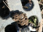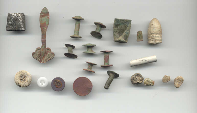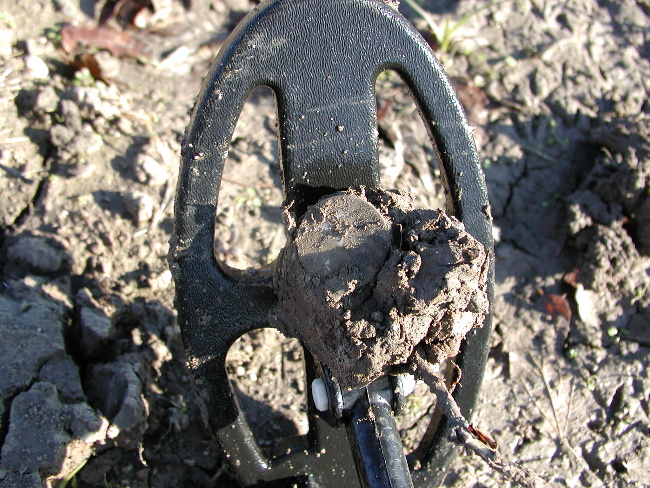 | Took the "Dirty D" out for a walk today and she nailed some rivets, some lead , some umbrella slides...and then a neat little button...a Regiment of Voltigeurs cuff...this is a fairly rare button Albert's lists it as RV25.