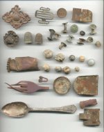 Some interesting Finds Made With 5" Coil Well, it's been awhile since I posted anything but thought everyone might like to see what a trashy colonial Louisiana site can produce using that little 5 inch coil. There's lots of pix...so stay tuned...the first one here is just the normal stuff you find thimbles,suspender parts,harmonica reeds,brass furniture decoration,musket balls, knapsack rivets, the little lion head is neat, so is the brass slide from a parasol.While you are digging this stuff you begin to wonder if you will ever find anything decent...and sometimes you do. Here's some more...pipe stems, part of a thimble, more musket balls and I think that buckle is a plow hit small frame forked tongue C.S. buckle. The measurements are exactly the same and the bar in the back is identical...but who knows? Looked and looked for the rest but no luck. This site is loaded with buttons from colonial to modern...These are just a few of the recent ones I have dug.I was suprised to find the Connecticutt Cuff...it still has lots of gilt as you can see. Here is a closer look at it. Think I should have pumped it a bit. Now this is one of my all time fvorite finds. I have always wanted to find one of these but never thought I would find one in this condition..it is a perfect colonial sash buckle with the prongs intact. They still move freely on the tube hinge and it has a beautiful maker's mark on the back.I think it survived since it was gold plated.Dug this saturday. Small silver really hits loud on that little 5 inch coil.I love to find these reales and half dimes.The 1 reale is dated 1790, the two half reales are 1801 and 1824. The half dime is 1840. Here is the front of the half dime and here is the back I saved the best for last...if you think small silver sounds off...well...these fairly screamed...and so did I when I saw what they were. The seated libertys are all New Orleans Mint and appear to be uncirculated. The bust halves are in excellent shape as well.All I used to clean them was 4 or 5 dozen boiling water baths which removed most of the caked on dirt. I still can't believe I dug these! Here are all 22 Philadelphia Halves and New Orleans Mint Seated Liberty Halves after being cleaned up. They date from 1809 to 1850. The first 11 were located with the 5 inch coil and the second 11 with the new Double D coil in very heavy iron trash. and here is a shot of the eagles on the back That 5 inch coil and little patience certainly pays off...I forgot to scan a 12'th infantry button from 1798 I'll post that later...hope you enjoyed the pix! Posted By: Richard in N.O