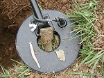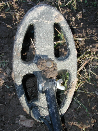 Here are some shots of the "Dirty D" showing of her prize. And a little closer... And a little closer still... My pictures aren't quite up to snuff , I think my hands were shaking!! I have to tell you this coil is just phenominal, I dug a brass sword belt rivet at about 8 inches with this coil today and it rang out quite loud...this field is quite trashy and the "Dirty D" just spanks it!! Sunday, 26 December 2004