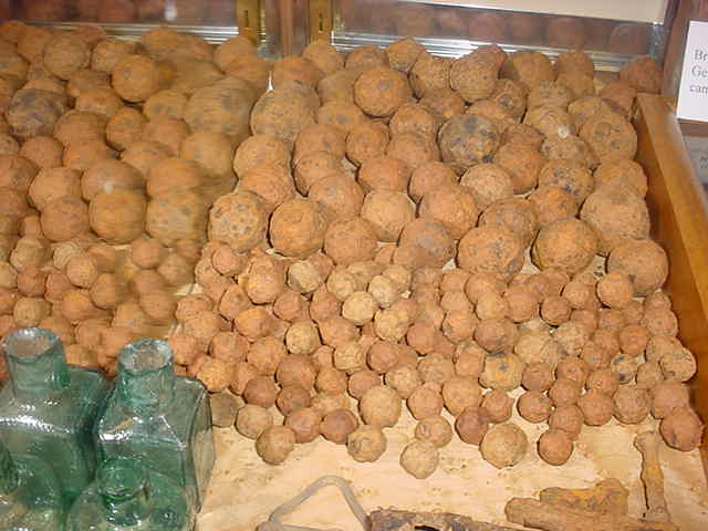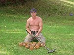 | Met up with Tony today in hope of finding some more relics. After a couple of hours with just a few shot bullets in our pouch I was going to another field and hit a deep big iron signal. After 3 feet down I exposed half of a cannon ball. I called Tony over the raido so we could both be there to witness the find together. After we got it out we covered the hole and started getting big iron signals everywhere. I dug another one real quick and told Tony we would just sit one machine down and take turns digging and spliting them. We got 20 all together and there are still more there. I dont know yet what kind they are but they do have fuses and I beleive they are Confederate. HH!!! Oct. 10, 2004 |