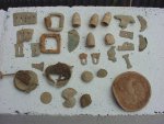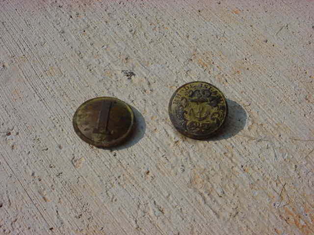 | Met up with Tony again this morning and dug some more goodies. I got some more lead (2 type 1 cleaners) along with a lined I and a Rohde Island button. Also dug 5 more eagels. HH!!! Aug 13, 2005