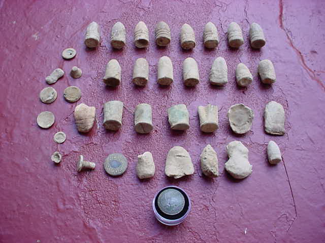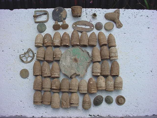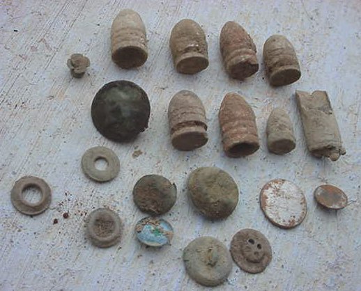 | Found some more bullets, dropped,fired,plowed,melted and some nice enfield's. Also found a nice 1 piece Virginia button with a Superior Quality backmark minus the shank and a few other relics. HH!!! Sept. 12, 2004