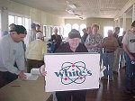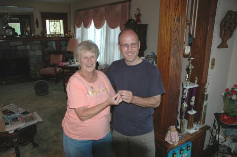 MORE ADVENTURES OF "LUCKY" BETTY! Betty had two very happy guests show up at her door last Saturday, but first we'll back up to the finds... The week before, Betty found a class ring with a date of 2007. Knowing it must have been recently lost, she contacted the school named on the ring. Also, the girl's name was inside. The school passed on the information to the owner, and she was happily reunited with her ring on Saturday. The story on the second ring is great! Betty was detecting the beach and a fisherman approached her and told her a man had been frantically looking for his wedding band the day before without any luck. A while later, another man approached and told her the same story. He said he had looked for it with a "cheap" detector with no success. Neither man had the name of the person who lost the ring but they knew there was an inscription inside with the couple's names and their wedding date. Enter Betty with her Shadow X3 and DD coil... the ring was found! Betty contacted the Police and put an ad in the local paper. She received a call from the Chief of Police almost immediately. The man who lost the ring had left his name and number and a description of the ring at the Police station. The date inside was 1995, and this was his 10th year anniversary. Now here's the good part of the story...I asked Betty how the man had lost the ring, and when he picked it up at Betty's house he told her he had a baggie full of those Goldfish crackers for his kids, and he slipped the ring into the baggie for safe keeping. What he didn't know was a seagull was watching the snackfest, and when the man took the kids down to the water, that seagull swooped down and grabbed the baggie with the ring inside! The ring must have shook out of the baggie while the seagull was flying with it or when it was pecking out the goldfish! Needless to say, the man was thrilled and more than a little surprised that his ring was found and returned to him :). Here's the pictures taken of Betty returning the rings to their owners: Sept. 20, 2005 |