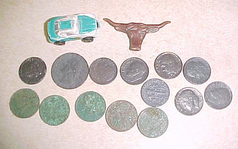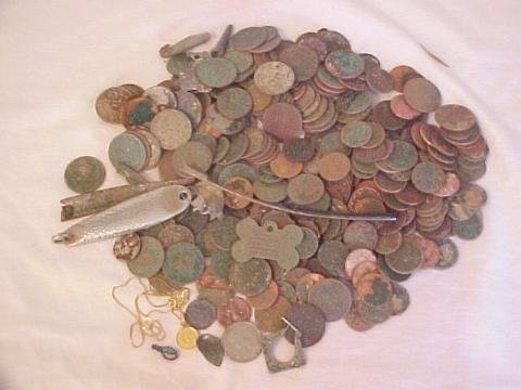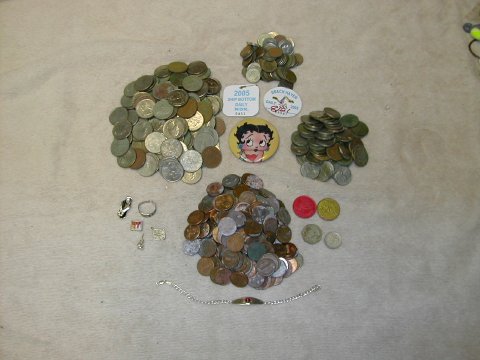 Betty just came over with her finds for the week so I could photograph them and post them for her. While I was buying gold teeth, and Randy was building display cases, and Bob(TX) was digging gold rings, and George was limbering up for the Busch Light competition :), Betty was hard at work scooping up massive amounts of treasure from the beach with her X3. Betty has a house at the beach, and hits it every morning and evening, before and after the sunbathers. Highlights of the week were...