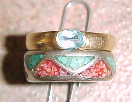 In Response To: MORE ADVENTURES OF "LUCKY" BETTY! (Amy) After Betty returned the rings to their owners Saturday, we headed to the beach on Sunday. Not only is Betty lucky and skilled, but she also returns more jewelry than anyone I know. In return, I think she's rewarded for always doing the right thing because she had another great day on the beach! Her finds included a 14kt gold and blue topaz ring, a silver ring with turquoise and coral inlay, a silver religious medallion and a buffalo nickel. The third picture is a nice Movado watch she found on the beach a few weeks ago. What goes around comes around. Sept. 20, 2005 |