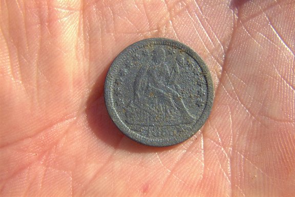 shovel of dirt had the target out of the hole. Instead of a coin, though,