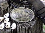 away at the roots to give me a break. With that root out of the way, Boyd had started digging with a hand tool and finally reached the target. He yelled out, "IT'S A PLATE"... "I SEE THE PUPPY PAWS!!!" He asked me if I wanted to dig it the rest of the way. I said, no, you're doing such a good job go ahead and make the recovery. This plate was recovered with a joint effort of my hunting pals! Without them I don't think I could have done it by myself. (Not in one day anyway) Hy