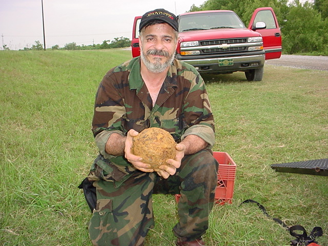 Hy holding a 24 pound C.S.A. cannonball. |