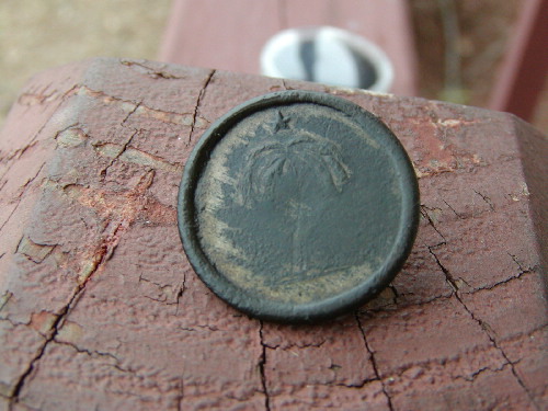 Mark Godwin of South Carolina had only been detecting for 2 years when he dug this extremely rare South Carolina Militia button. Mark has dug other South Carolina buttons, as well as numerous other buttons, bullets, buckles and coins. Mark uses an X5, and we wish him continued success in the field!