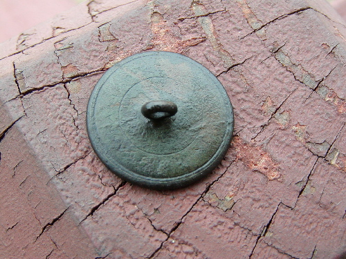 Rare find! Flat button carved into the shape of a star - possibly a homemade early militia corps badge. Found with Shadow X5.