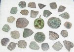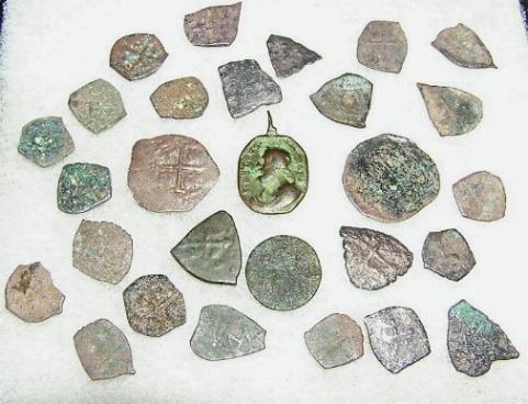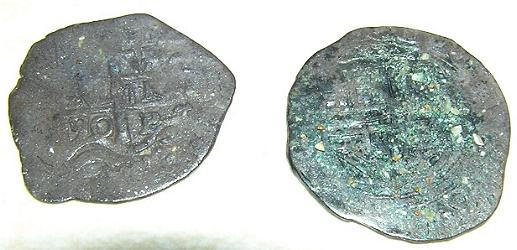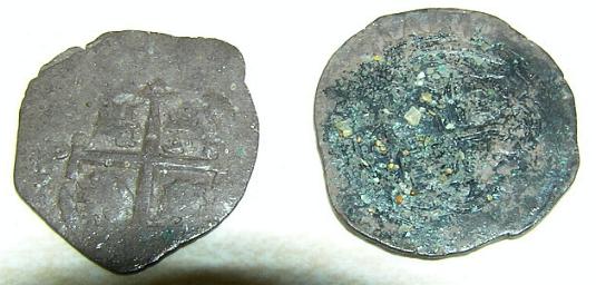 Matt Zulz, member of Team Shadow Midwest, had the opportunity to travel to Florida's treasure coast after the recent hurricanes, and returned with treasure most of us only dream about! Matt flew down from Illinois right before Hurricane Jeanne made landfall and just before his hotel roof blew off! He arrived on a Friday to find the island barricaded by Police, and was only able to hunt a day and a half before having to return home. The beach was cut about 5 feet down and the storm took out 50 to 60 yards in places. In Florida, Mel Fisher's company holds the water rights, but the beach between low and high tide is fair game for treasure hunters. In the short period he had to hunt, Matt found over twenty-five 1/2, 1 and 2 reales - most from the 1715 Spanish Fleet - with the exception of a 1618 2 reales and a 1690 2 reales from the Lima Mint! Probably the most significant find, and Matt's favorite, is a religious medallion from the 1715 Fleet valued in the 4 figure range. Matt is in the process of having the inscriptions translated, but so far he knows it depicts the Apostle, St. Peter. While eyeballing the gravel and seashells, Matt spotted several pieces of rare blue and white Kanghi china carried by the 1715 Fleet. The broken china commands prices up to $500.00, as the pieces are used to make earrings, pendants and other jewelry, as well as trinket boxes. Some of Matt's other finds were dozens of musketballs and lead sheeting used to line the treasure chests. The sheeting still has the impression of the canvas bags used to hold the coins! Matt's only regret is that he wasn't there a week earlier when a Nor'easter following Hurricane Ivan exposed several gold escudos for other beachcombers. Nonetheless, Matt's finds are no less than spectacular, and all were found with the Shadow X5. So in answer to Dino's question down below, "Can this be true?," the answer is an emphatic "YES!" Congratulations Matt, and thanks for sharing your treasure with all of us on the Shadow forum! In order.... Reverse shot of the coins and medallion: Front of the 1618 and 1690 2 Reales: Reverse of 1618 and 1690 2 Reales: Front of the 1715 St. Peter the Apostle Medallion: Back of the medallion: