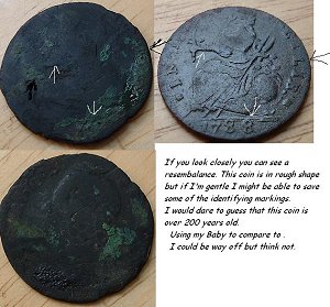 D.B. drove down from Maine to meet and hunt with me today. We hunted hard all day and in the last hour I made a great find for me. I have just broken my oldest coin record for the second time this week. But more then that I made a much greater find, A new friend. We have the greatest hobby in the world my friends, if you don't believe it just think of all the finds you've made. HAPPY HUNTING. 1721 - 2 Reale... Robert - Oct. 13, 2004 |
