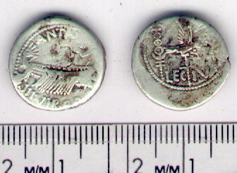 right The coin, is a roman Denari, dating to 31-32 BC.